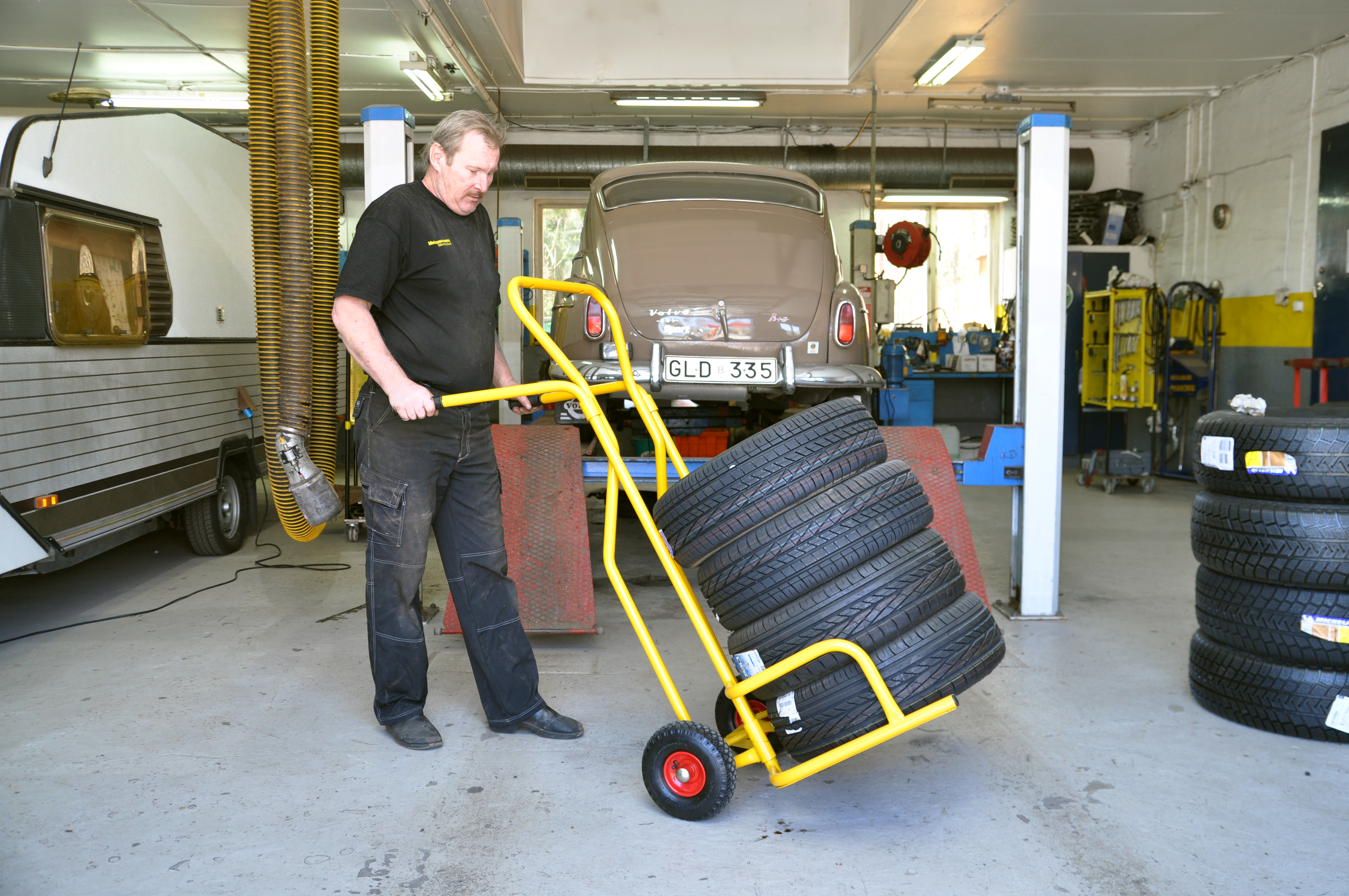 Reifensackkarre zum einfachen Transportieren von Reifen. Luftbereifte Räder ermöglichen die Nutzung auf allen Untergründen.